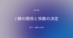 2つの解を \(\alpha\) と \(\beta\) と置き、その和や積の関係を考えていきます。