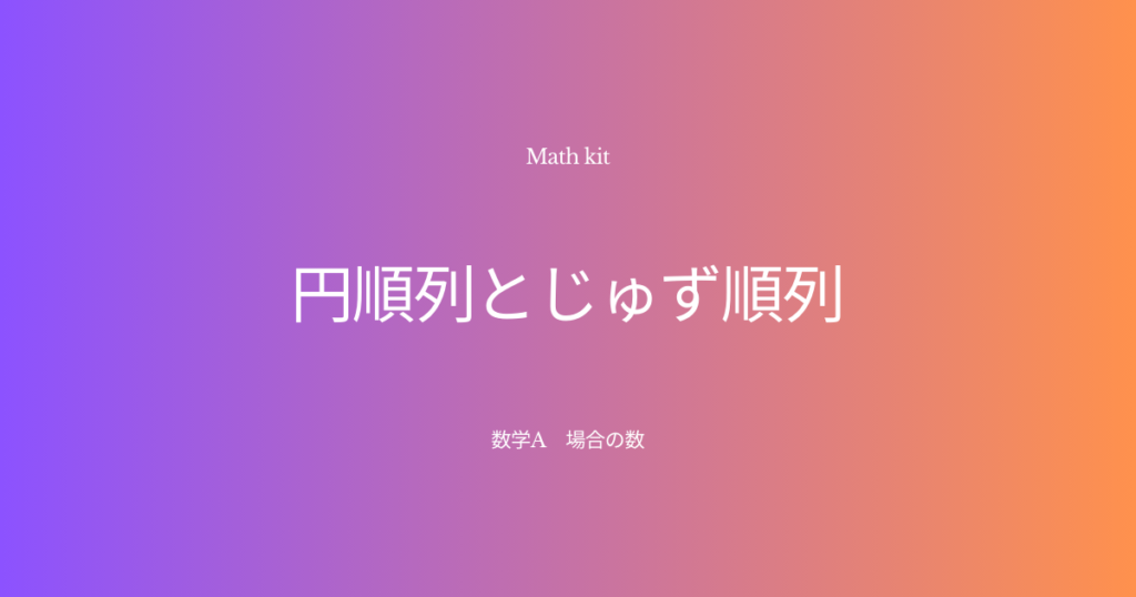 円順列とじゅず順列の違い 今回は、円順列とじゅず順列について例題を交えながら解説していきます。 順列 異なる \(n\) 個のものの中から異なる \(r\) 個を選んで... -