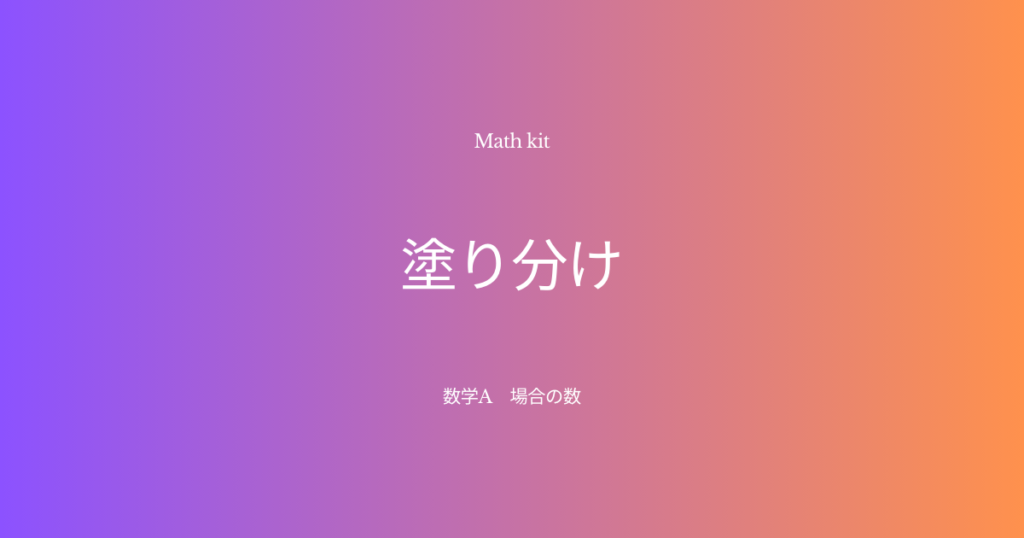 塗り分けの場合の数 今回は塗り分けの問題です。 上図を色で塗り分ける方法は何通りあるのか?という問題です。こういった問題では、大抵同じ色で塗られた領域は隣接し... -