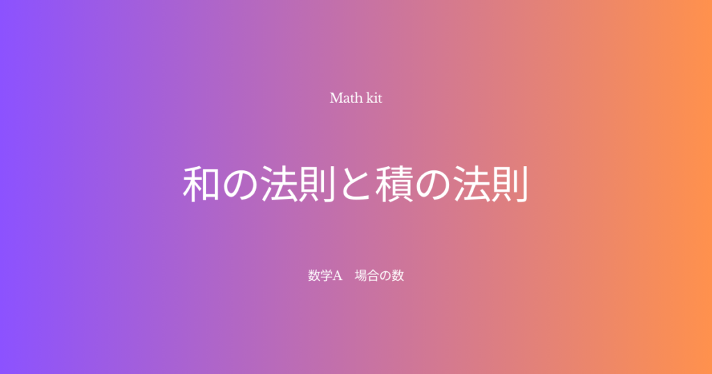 和の法則と積の法則 見分け方 今回は和の法則と積の法則についてです! 似てる法則ですが、しっかりと区別させられるようになりましょう。 和の法則 事柄 \(A\), \(B\)... -