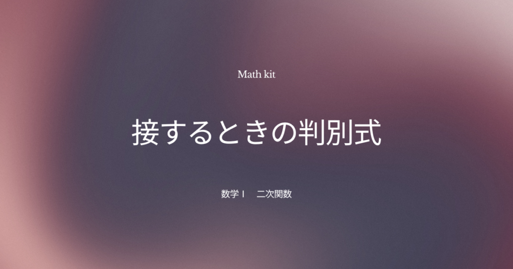 二次関数が \(x\) 軸と接する問題 今回は、グラフが \(x\) 軸に接するときの \(k\) の値を求める問題です。 グラフが \(x\) 軸に接するとき、以下のように図示すること... -
