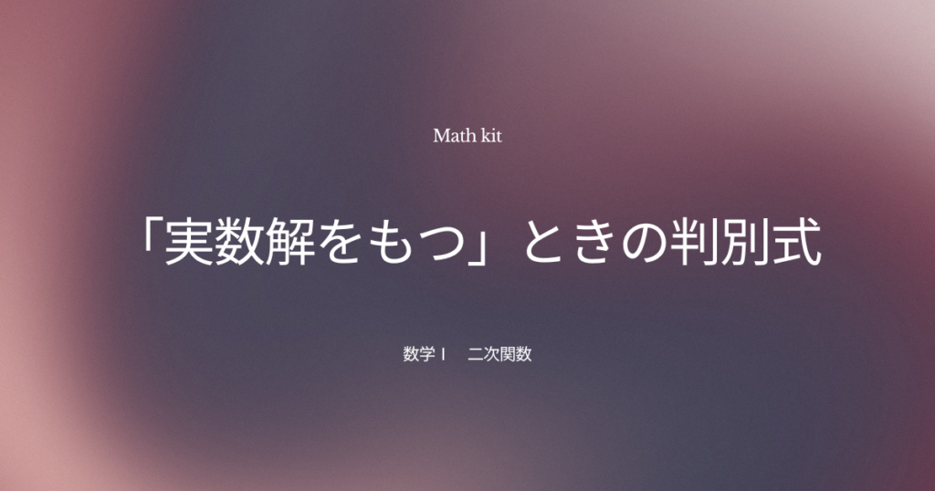 「実数解を持つ」 今回は、問題文の「実数解を持つ」を言い換えて解く問題です。 \(x^2-3x+2=0\)\((x-2)(x-1)=0\)\(x=2\), \(1\) \(\longleftarrow\) これが実数解! ...