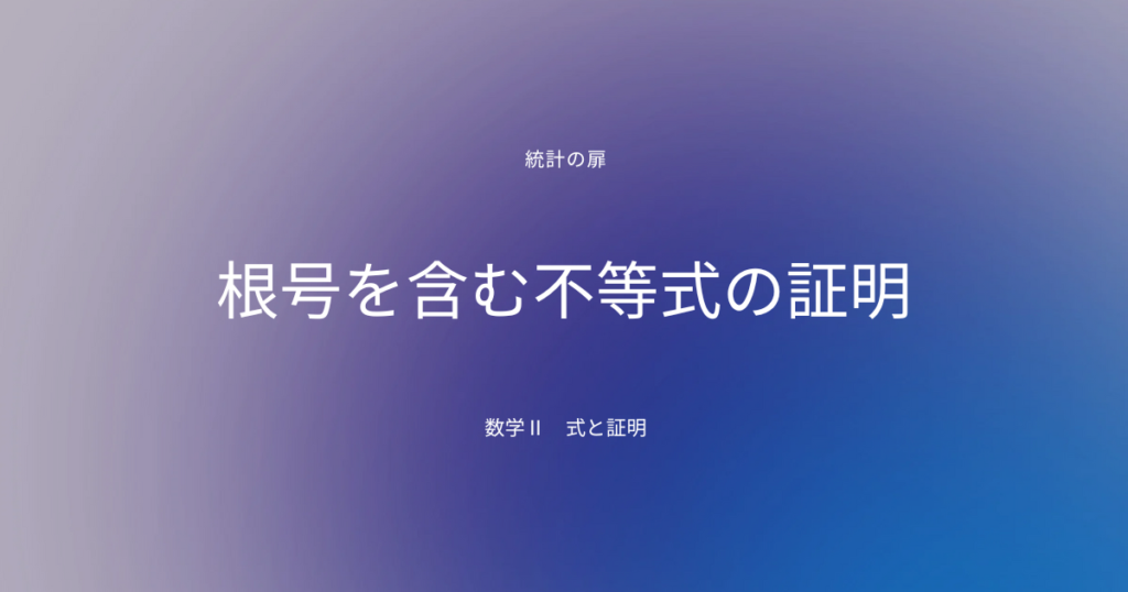 根号が含まれる不等式の証明では、 \(2\) 乗を疑え 今回は不等式の証明を取り扱いますが、不等式に根号、つまりルートが含まれるものを紹介します! 根号は\(2\) 乗する... -